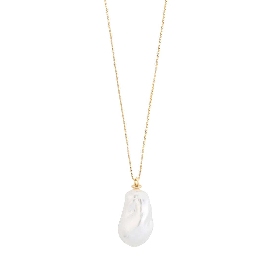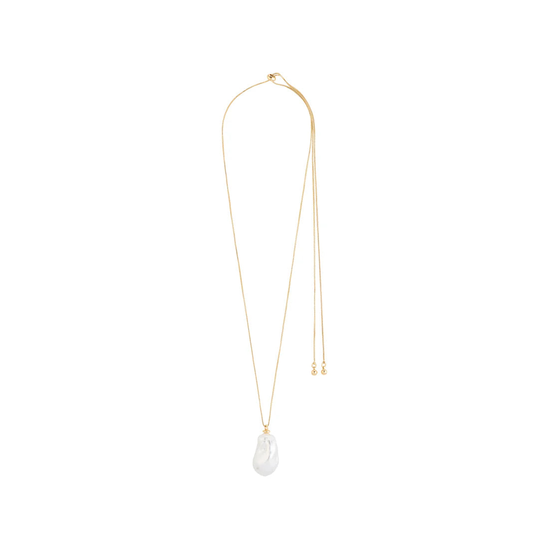 Elevate your style with a touch of elegance from the SKY necklace, part of Pilgrim’s exclusive IMAGINATION collection. Introducing the season’s must-have accessory: our chic gold-plated box chain necklace featuring a beautifully unique pearl pendant. This elegant piece effortlessly elevates any casual outfit, adding a touch of sophistication and shine to your everyday look. Perfect for making your style stand out with a hint of luxury. The necklace measures 90 cm and has an adjustable slide lock that makes it possible to style it short or long depending on your outfit and occasion.