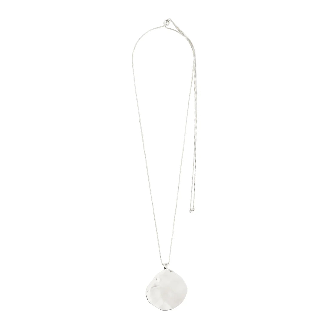 Find your sparkle and let it shine! Silver-plated SPARKLE necklace from Pilgrim – your go-to piece for the season's standout looks. The chain's large and shiny pendant features a wavy surface, inspired by the play of light on the ocean's surface. A simple and stylistic Scandi design with a unique handcrafted feel and a length of 90 cm. With an adjustable slide-lock, the chain is easy to style according to outfit and occasion. Wear it close to the neck with an open-collared shirt or as a focal point in the middle of your chest with an oversized turtleneck sweater. The necklace is made from 98% recycled material - fashion with care for our planet.