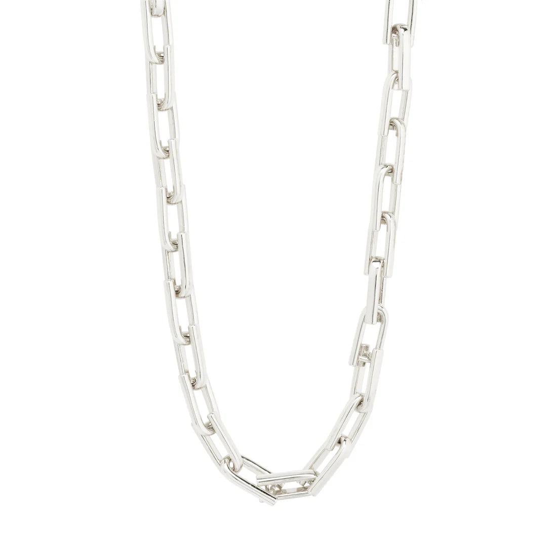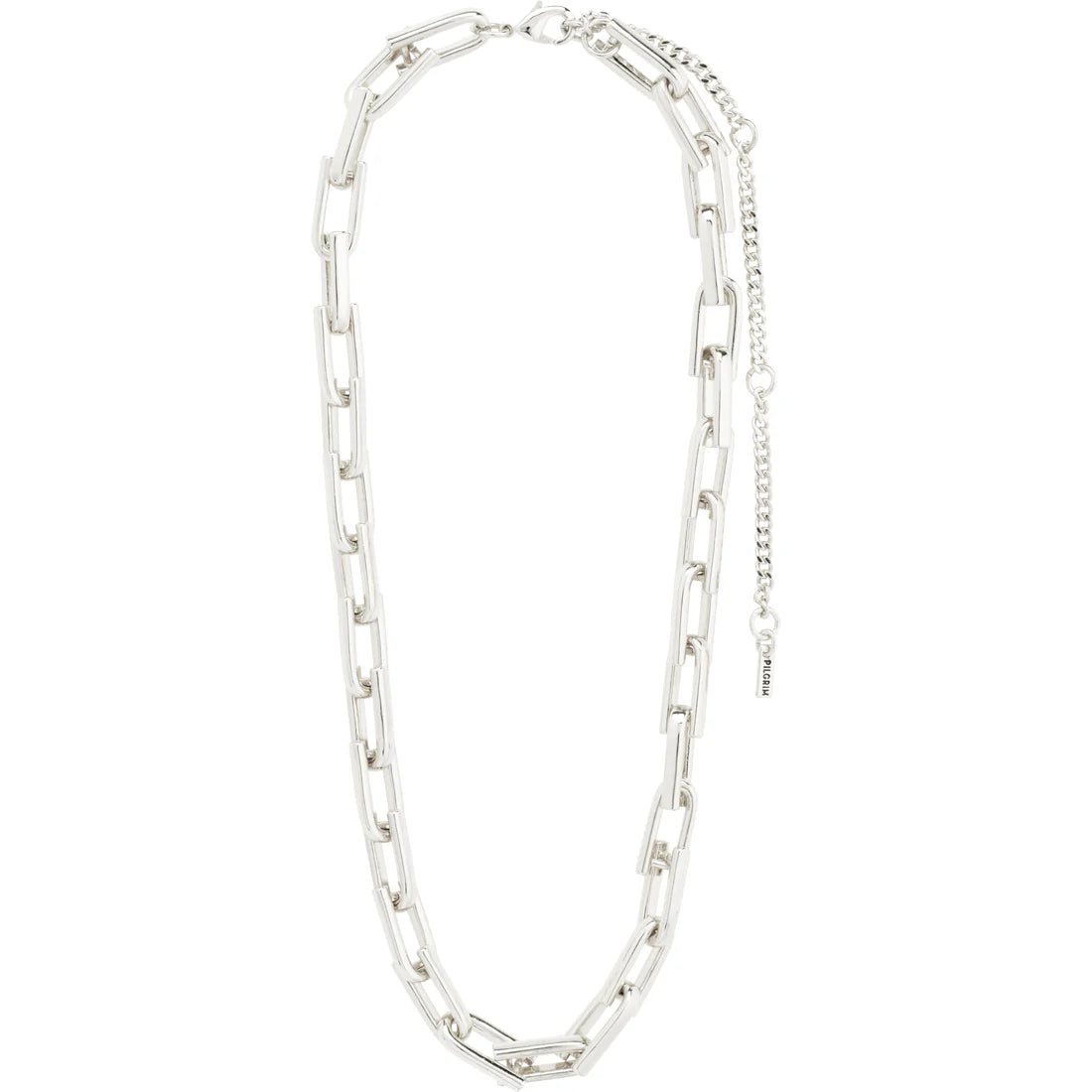 Stay strong! Silver-plated cable chain necklace from Pilgrim with rectangular open links that have a raw and sophisticated look that will boost your everyday styles. The chain's shiny finish adds a slick urban edge to your look, perfect for creating a confident style statement. With an adjustable length of 38 cm plus a 12 cm extension chain, you get a piece that can be customised according to your outfit and is environmentally friendly. The STAY necklace is made from 97% recycled material.