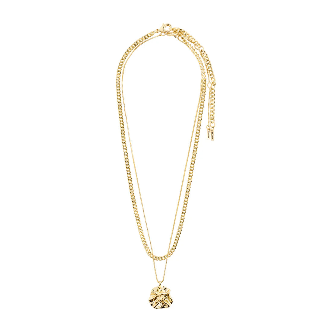 Discover nature's beauty with these gold-plated necklaces from Pilgrim's Willpower collection. The 2-in-1 set plays with contrasts and combines a feminine, organic pendant with a powerful curb chain. The pendant's irregular shape gives a handcrafted feel to the chain, which can be worn alone or in combination with the curb chain in a stylish layered look.