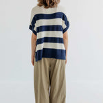 These PJ styled trousers have straight legs and elastic waist with tie-strings. They have side pockets and are super comfortable.