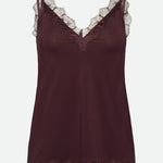 Lovely lace top with V-neck and adjustable straps. The popular top is designed with an elegant lace around the neckline and at the hem. The top is available in several colours and is easily styled. Wear it as it is or underneath a shirt or a blazer for a classy and feminine look.