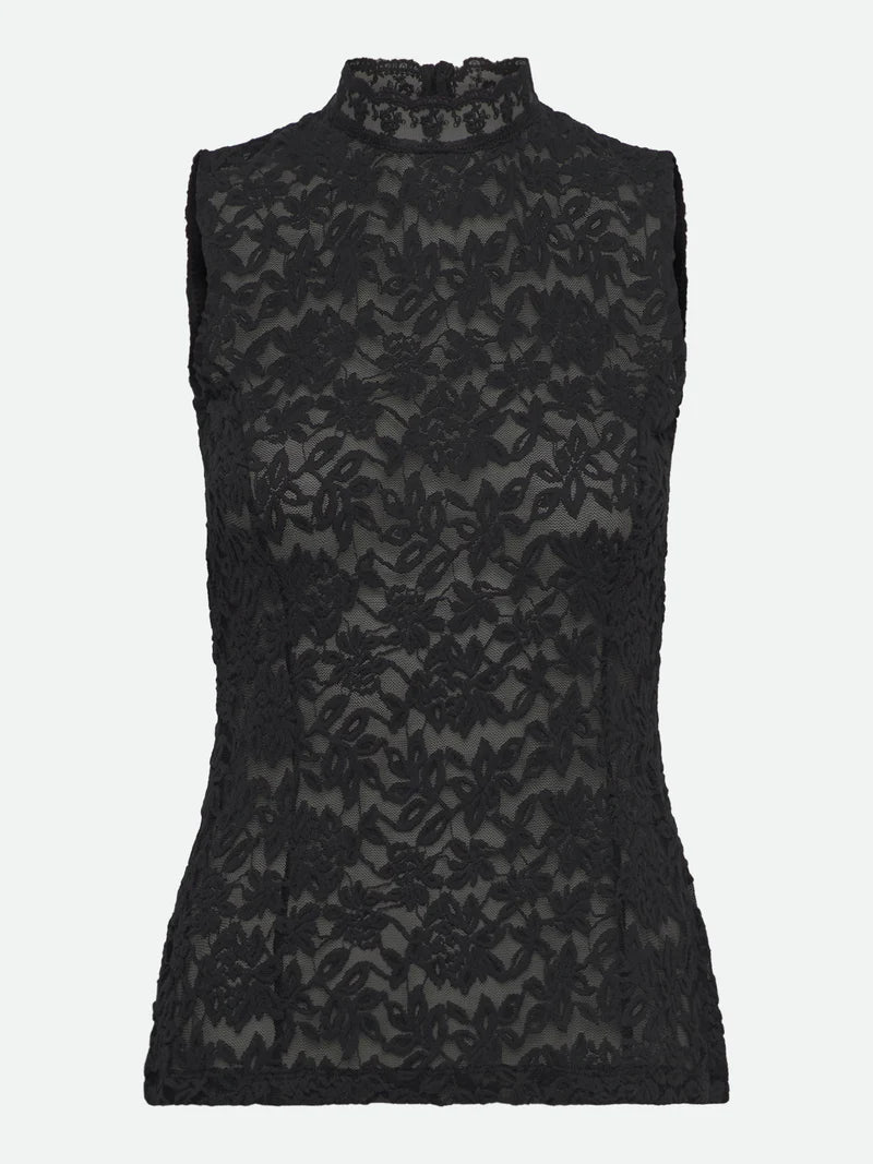 The RWDelicia Lace Turtleneck Top is a sleeveless lace top with a high neckline and delicate all-over lace details. With its slim fit and sheer finish, it offers a refined, feminine touch to any wardrobe.
