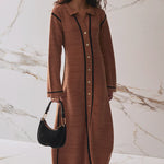 The Autumn Knit Dress is the perfect blend of comfort and style. Designed with an elegant, collared neckline, feminine sleeves with the thick hem rib. For a different approach to styling, wear half unbuttoned with jeans underneath.