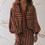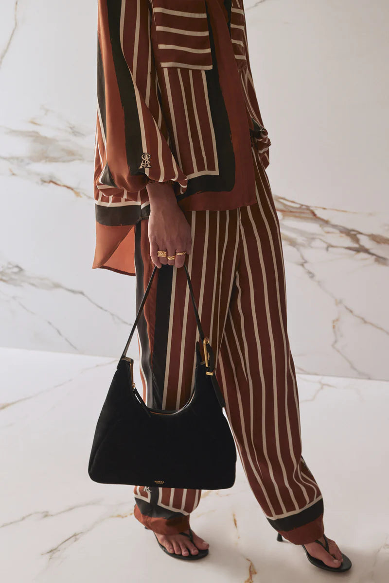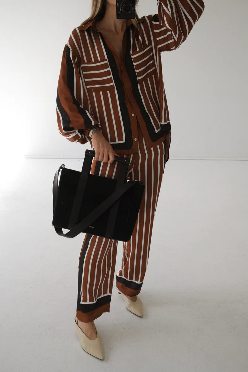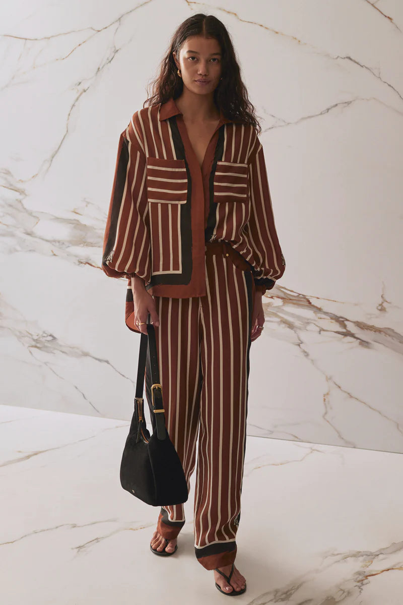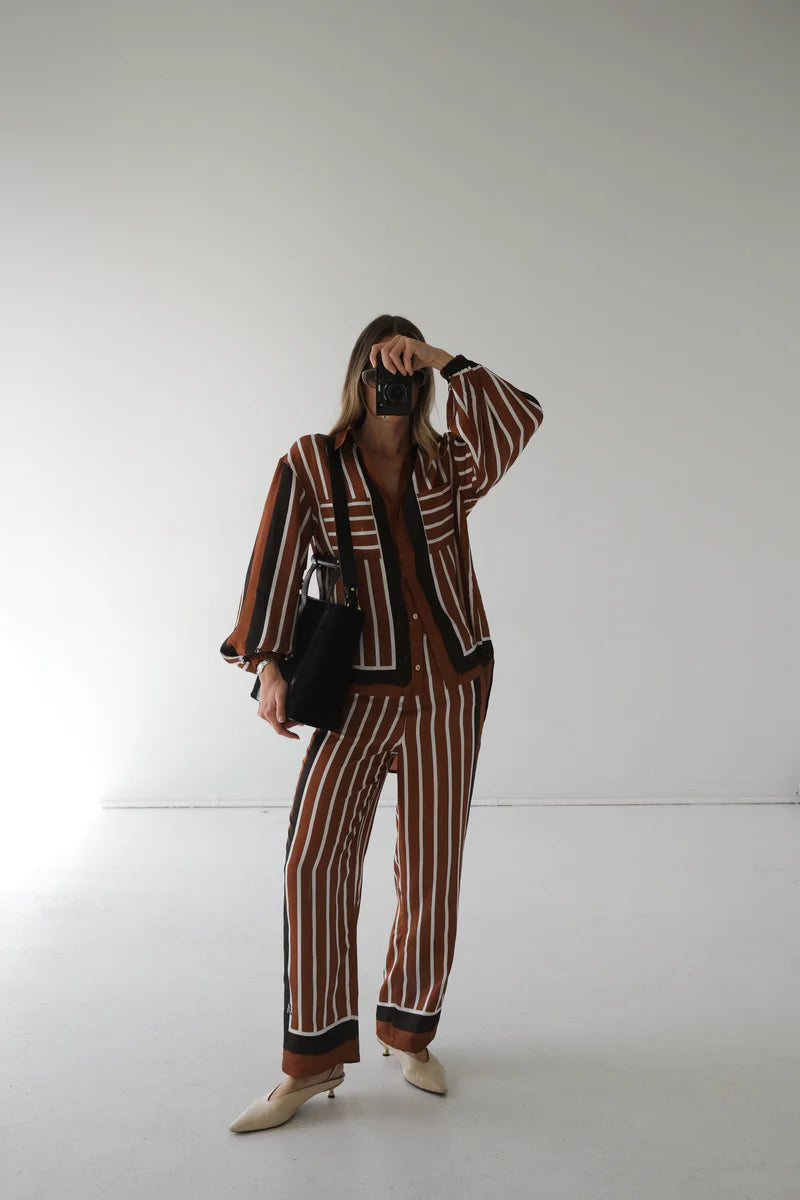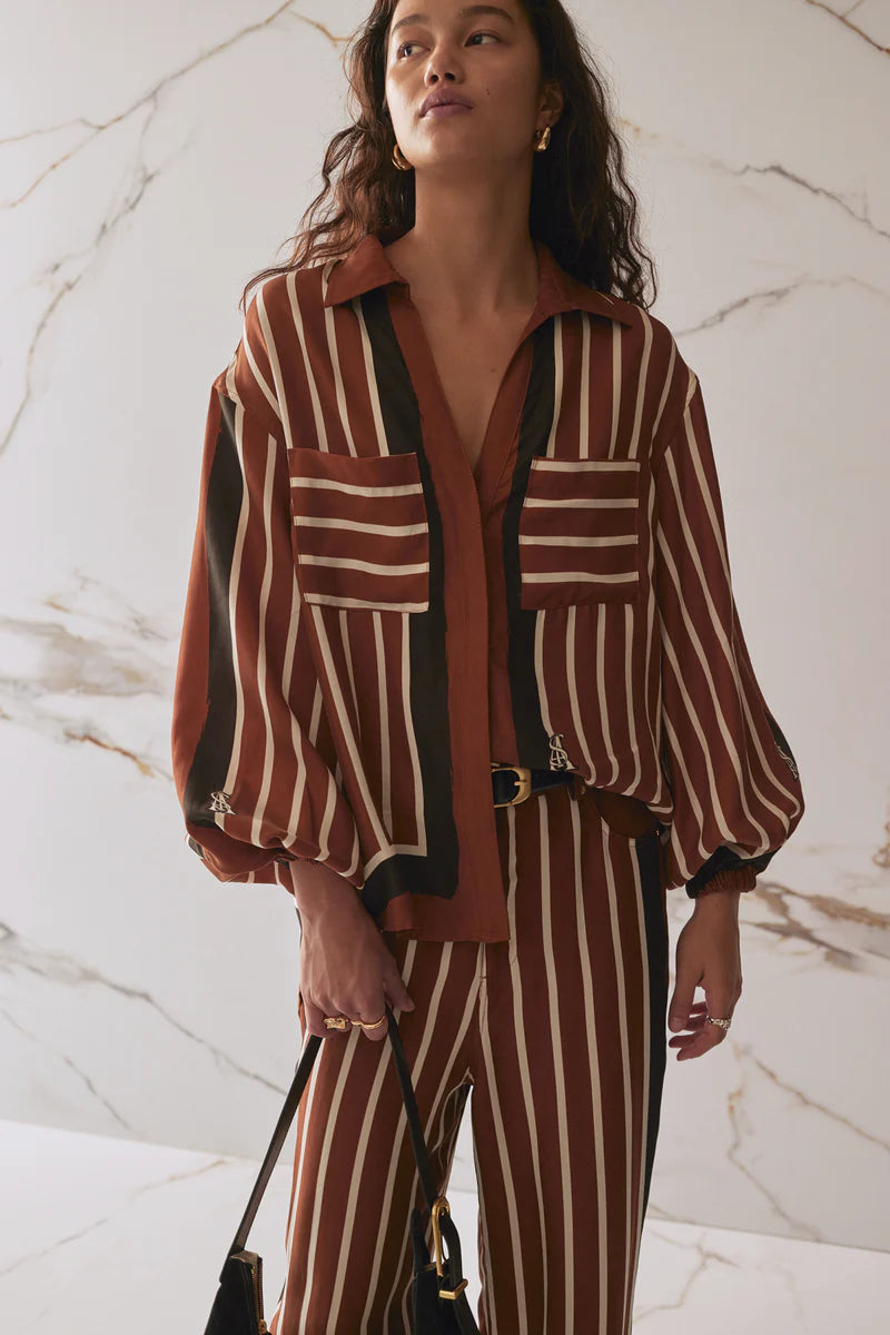 Style a casual everyday outfit with an oversized knit or dress up in the matching Faye Shirt Cherrywood Stripe.