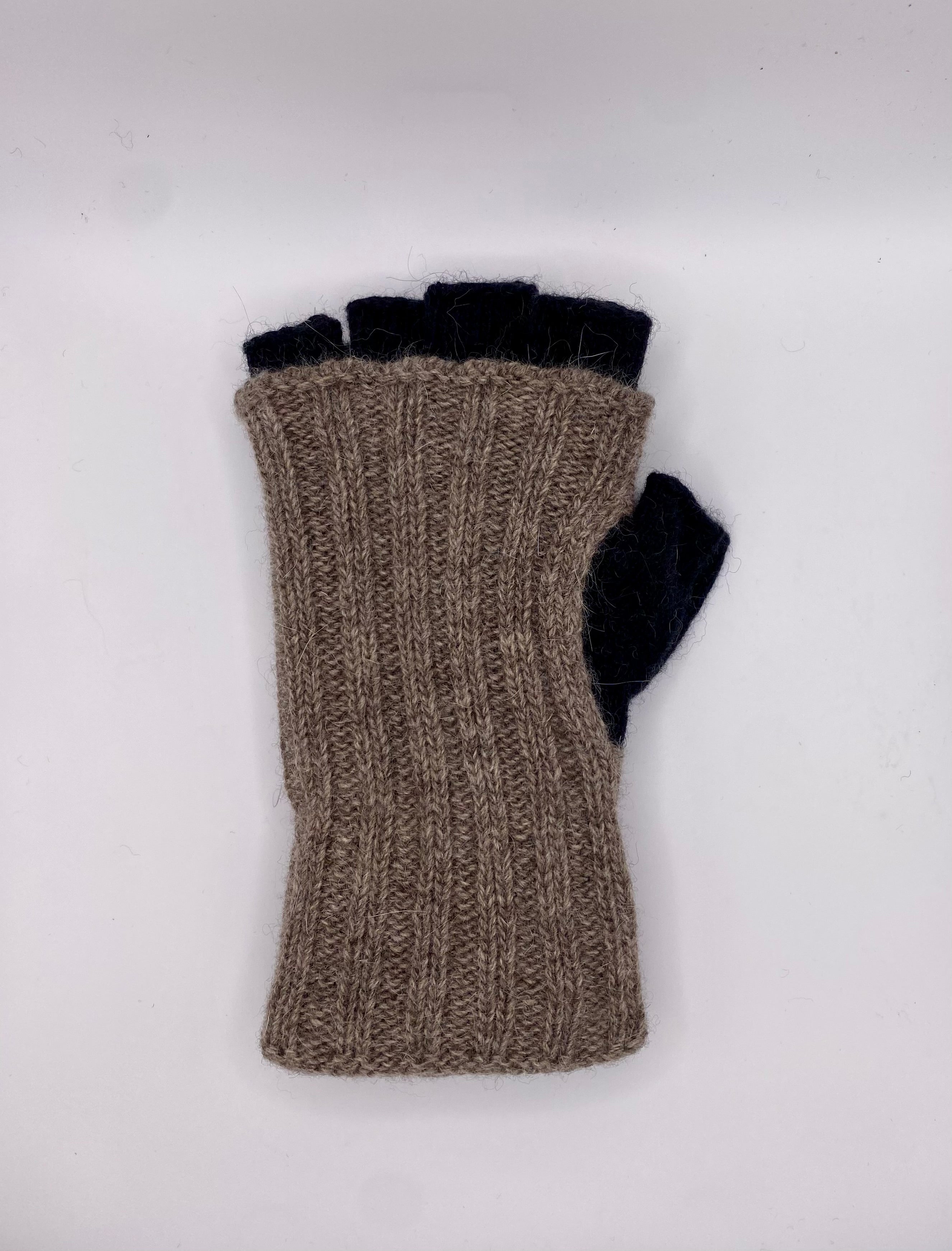 Wool & Angora Fingerless Gloves - Black/Taupe