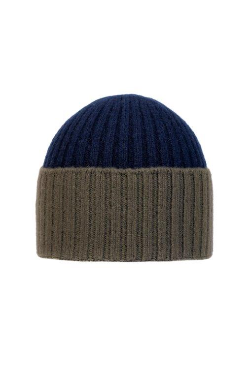 Soft beanie in wool and cashmere with a wide, contrasting ribbed cuff creating a two-toned look. Ideal for the cold of winter.