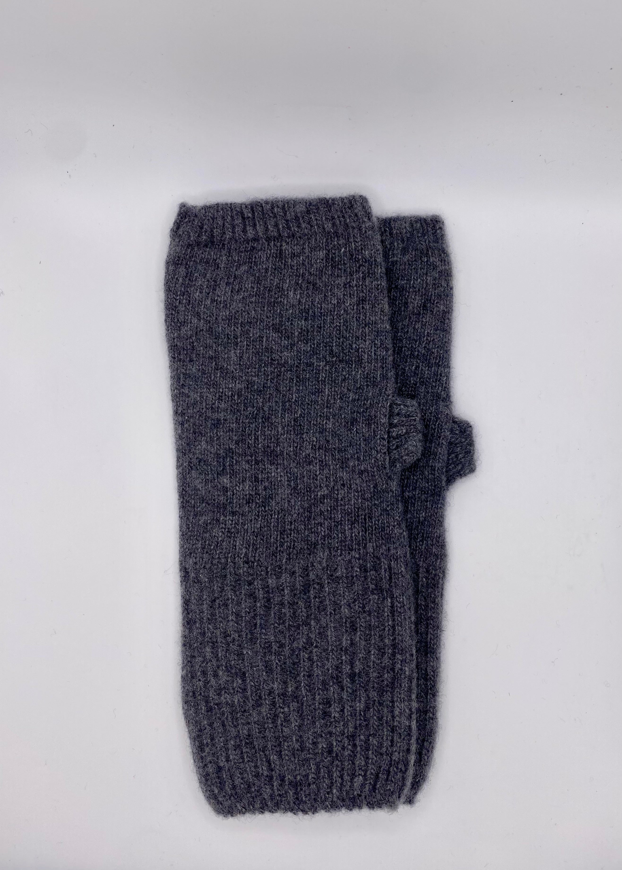 Wool & Cashmere Fingerless Gloves - Charcoal
