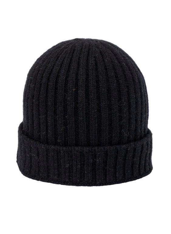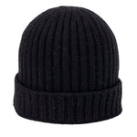 Rib-knitted beanie in soft wool and cashmere with fold-up cuff. Ideal for the cold of winter.