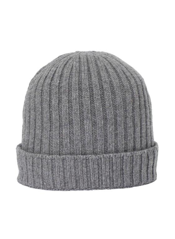 Rib-knitted beanie in soft wool and cashmere with fold-up cuff. Ideal for the cold of winter.