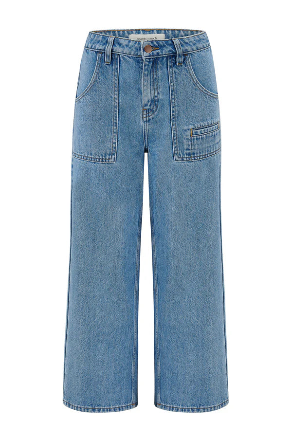 A high-waisted cropped wide leg with patch pockets - structured, easy, everyday denim.