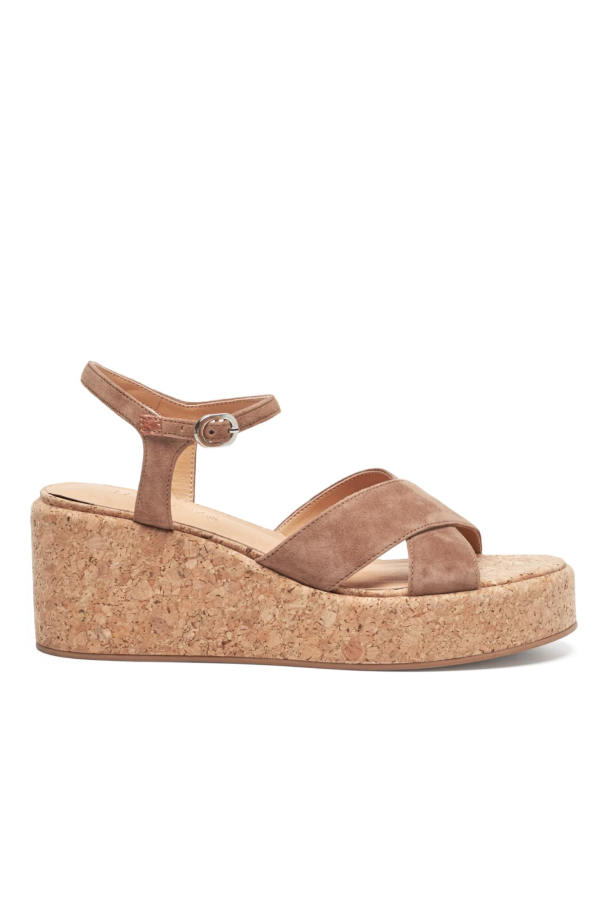 Emily is a stylish block wedge heel crafted from 100% LWG certified soft suede, offering exceptional stability. The durable tunit outsole features anti-slip recycled rubber for added safety. Elegant details in upcycled fish leather with ASC certification completes the design.