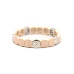 We introduce the Colorful Silver range; swapped for their regular gold details, these bracelets have silver parts next to coloured ones. All in trendy hexagon shapes. 1cm wide.