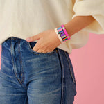 Playful and colourful bracelets meant to be stacked and mixed with your other jewellery.