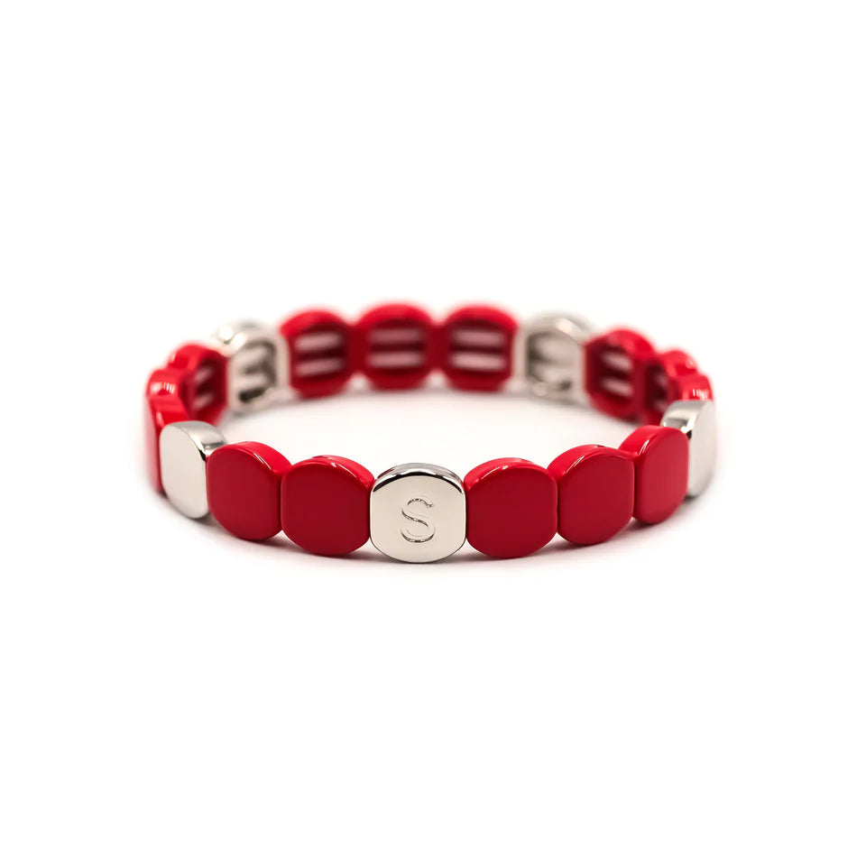 We introduce the Colorful Silver range; swapped for their regular gold details, these bracelets have silver parts next to coloured ones. All in trendy hexagon shapes. 1cm wide.