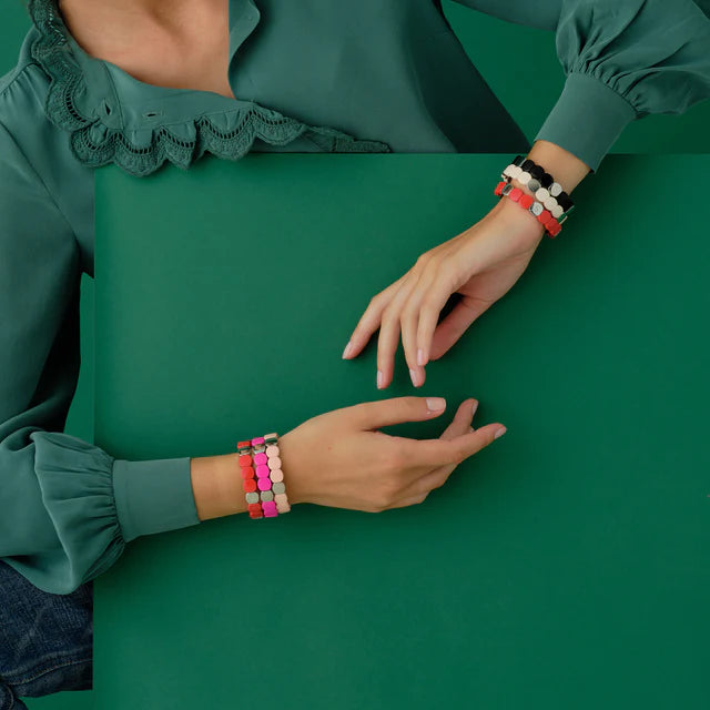 Playful and colourful bracelets meant to be stacked and mixed with your other jewellery.