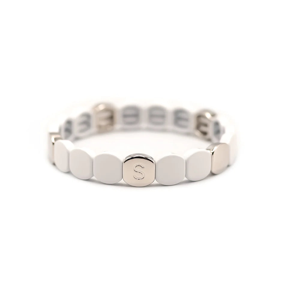 We introduce the Colorful Silver range; swapped for their regular gold details, these bracelets have silver parts next to coloured ones. All in trendy hexagon shapes. 1cm wide.