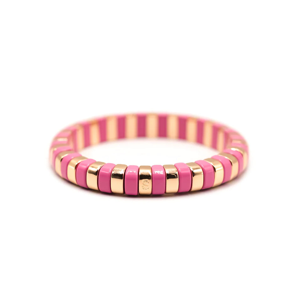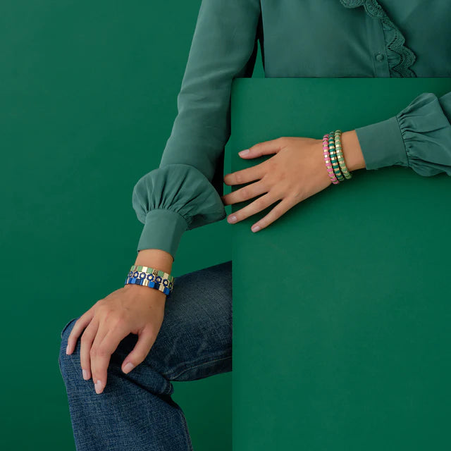 Playful and colourful bracelets meant to be stacked and mixed with your other jewellery.