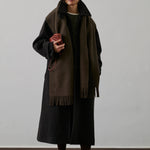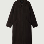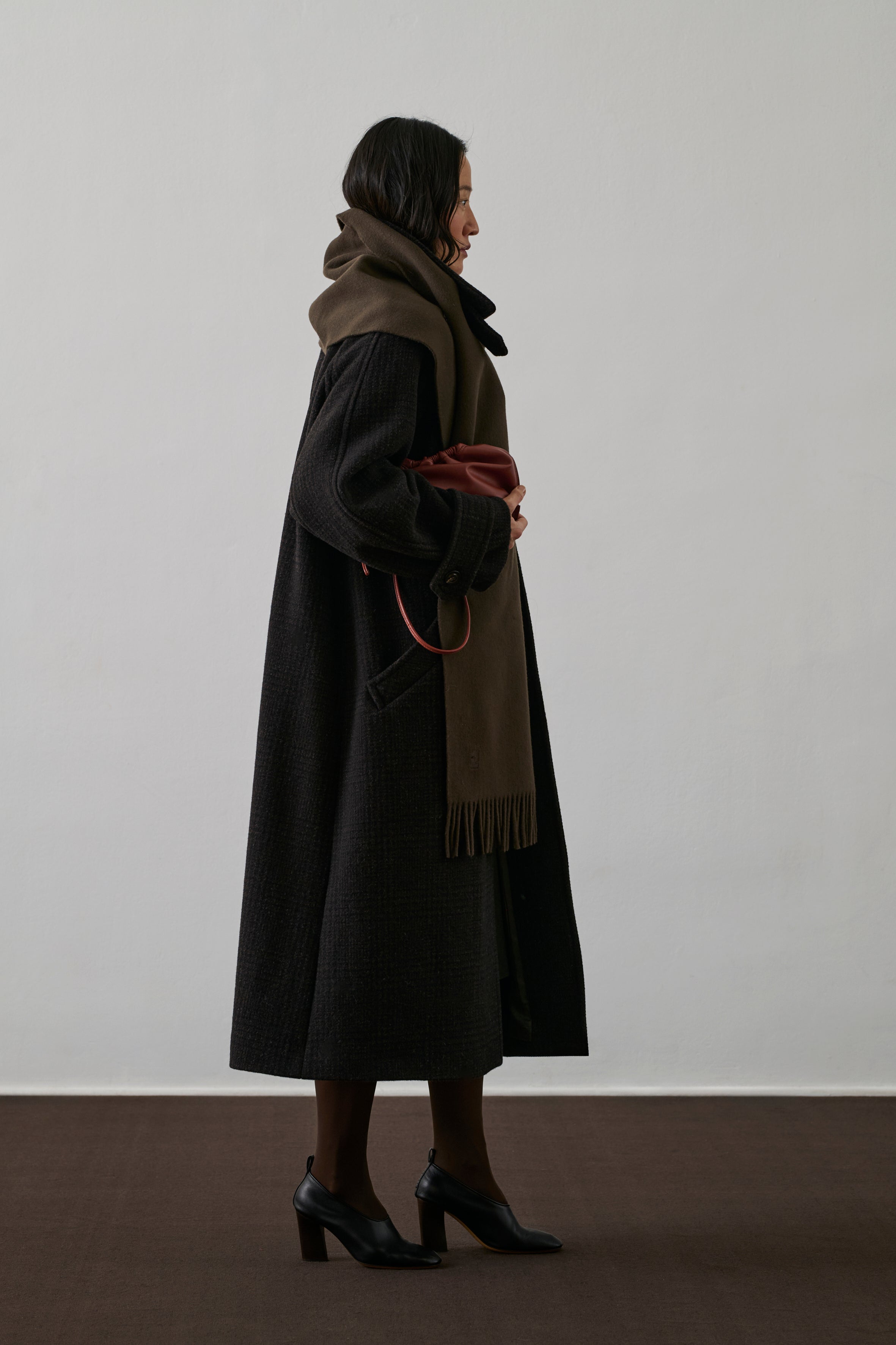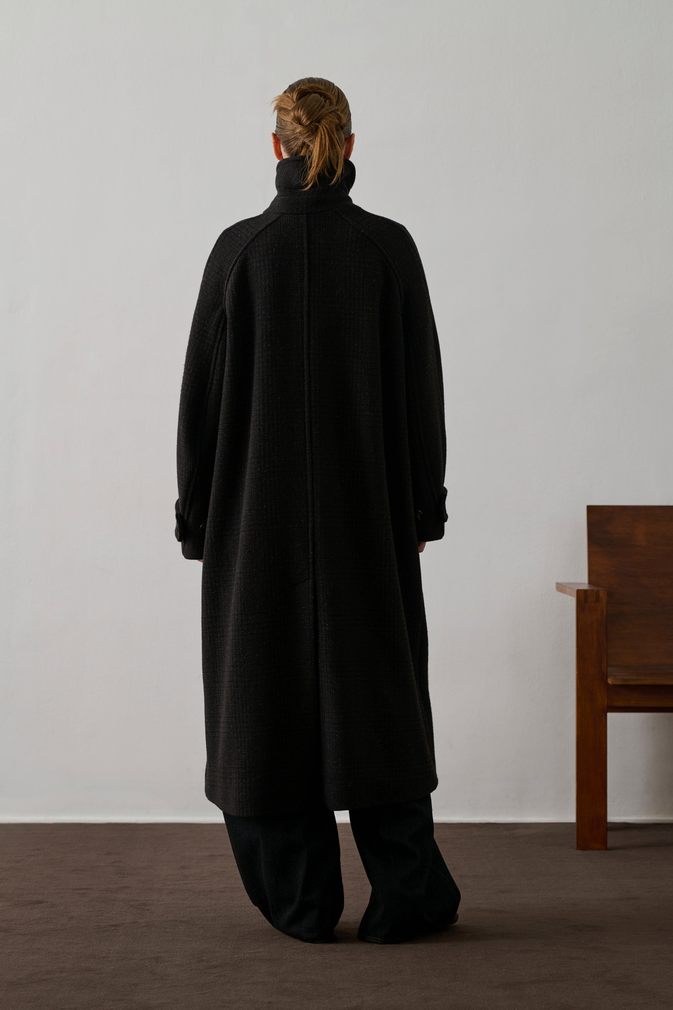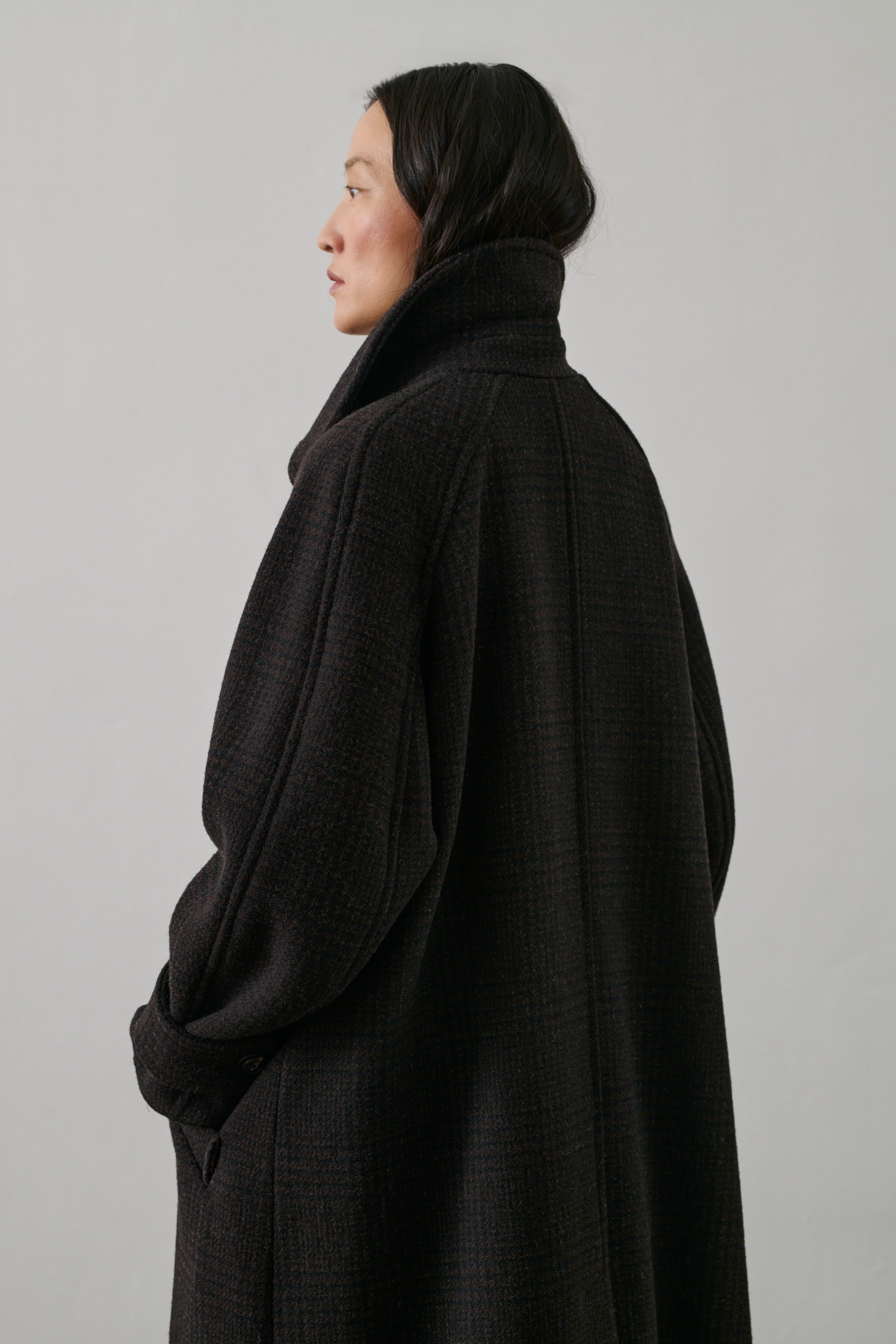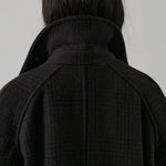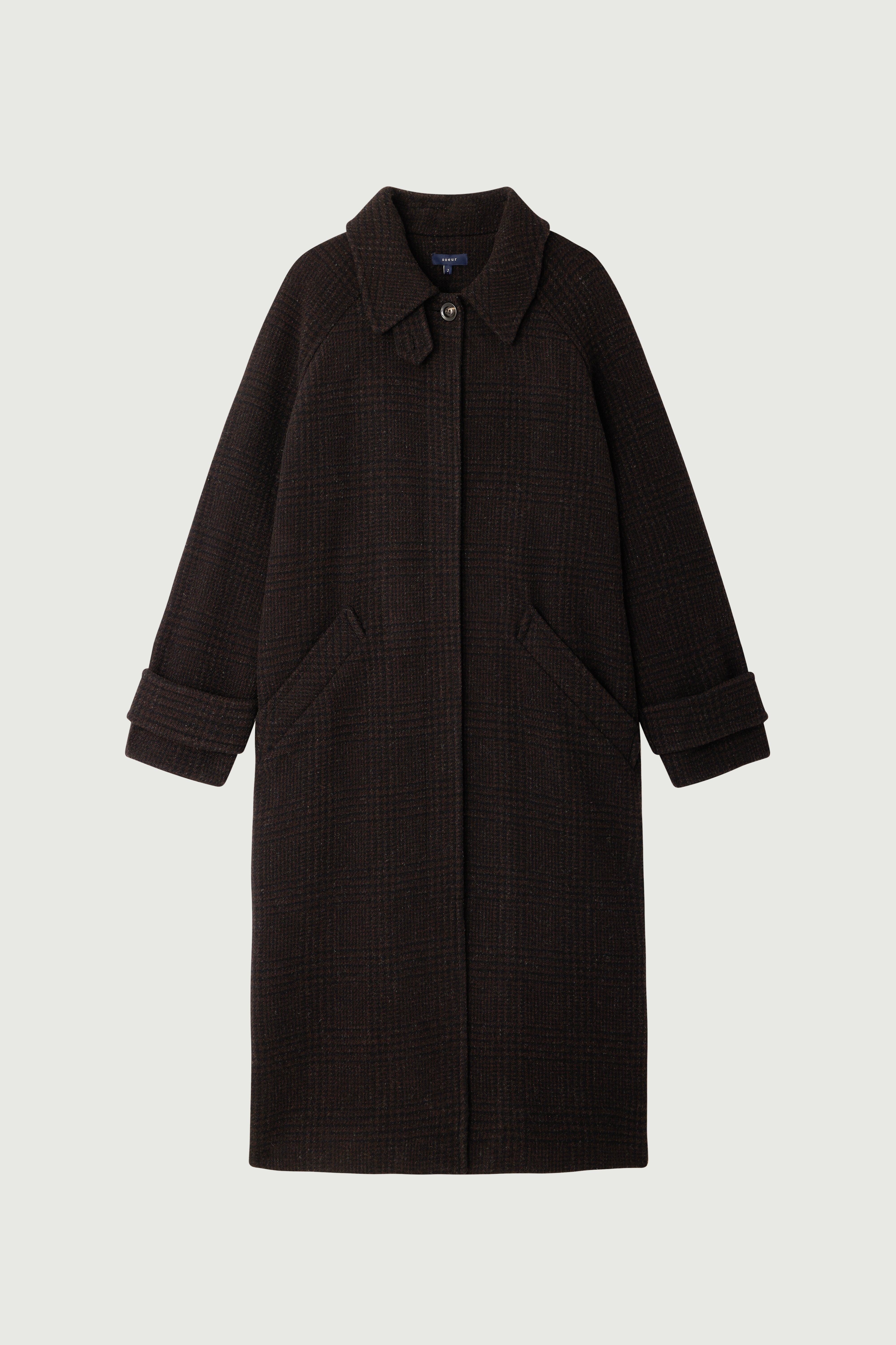 Checked, long coat in 100% wool. Small collar and full button closure. Designed for a relaxed fit.