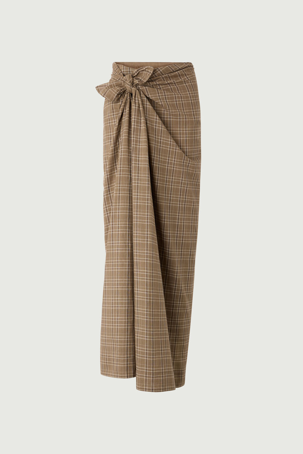 Straight cut midi skirt with extra fabric to tie in the front creating a draping look.