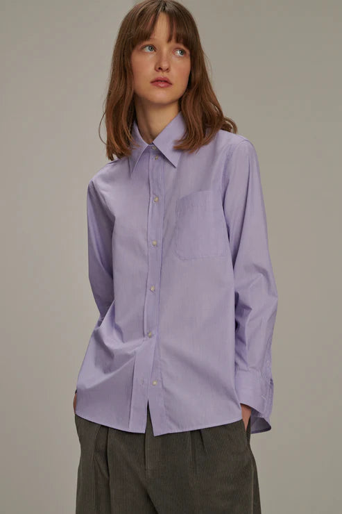 Classic shirt in lavender. It features a straight cut, classic collar with front buttoning and chest pocket.