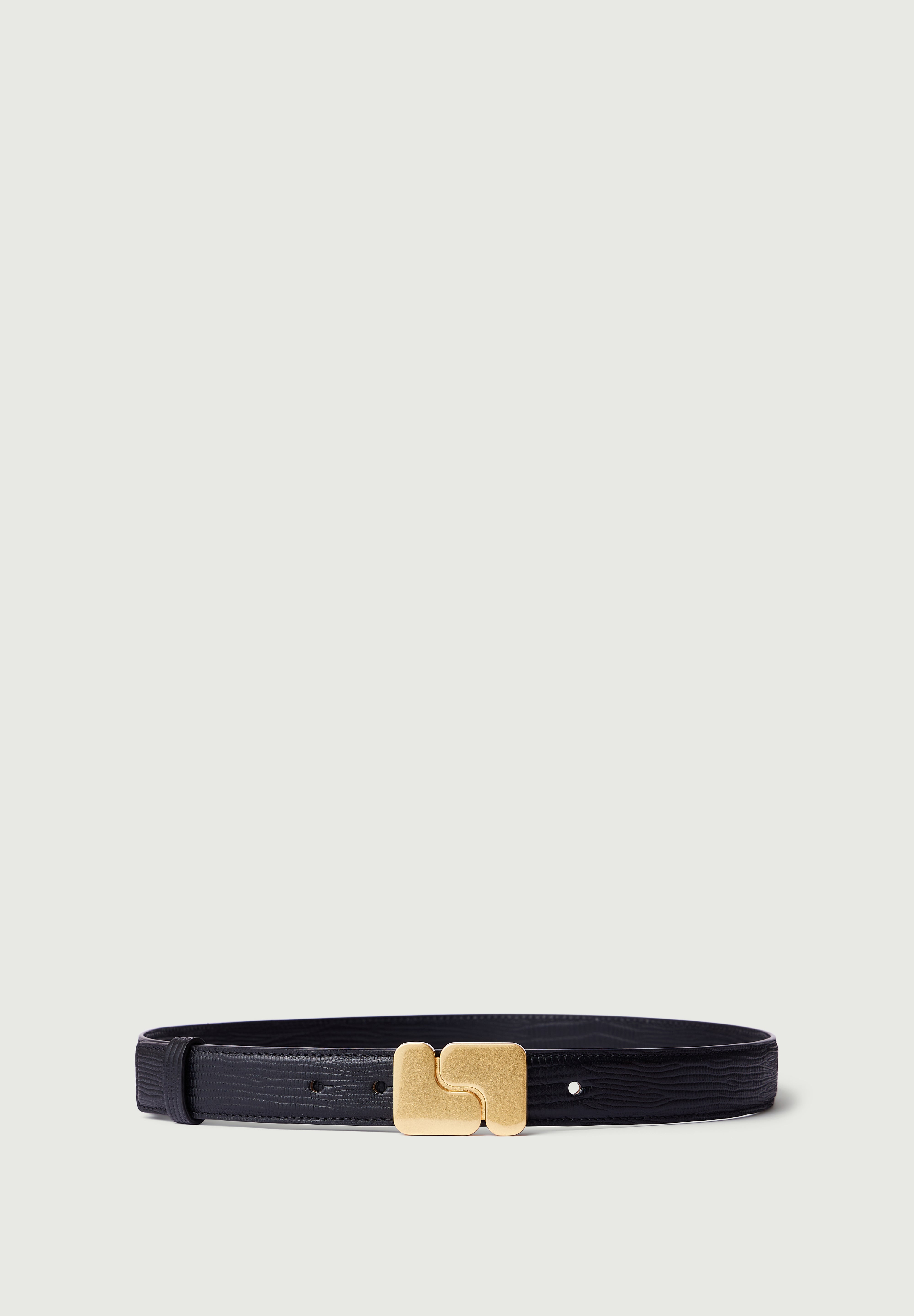 NINON is a glacé leather belt with a metal buckle developed exclusively for Soeur. The buckle features the 'S' of their monogram in gold-tone metal. It's elegant yet ideal for everyday wear.