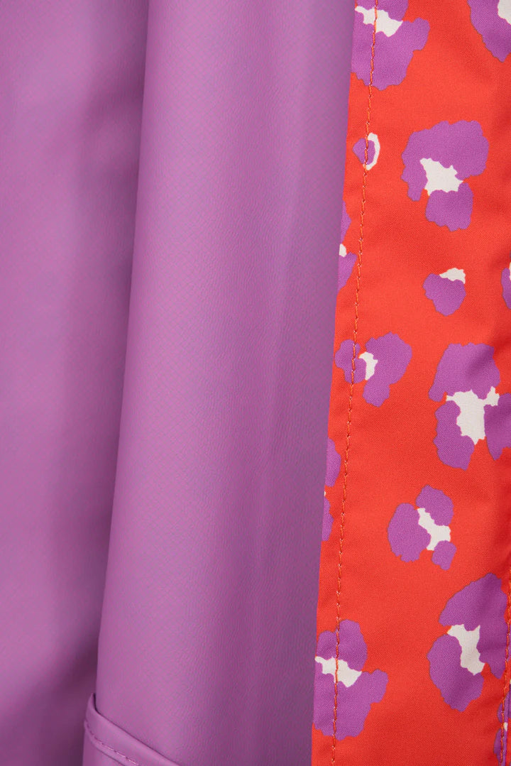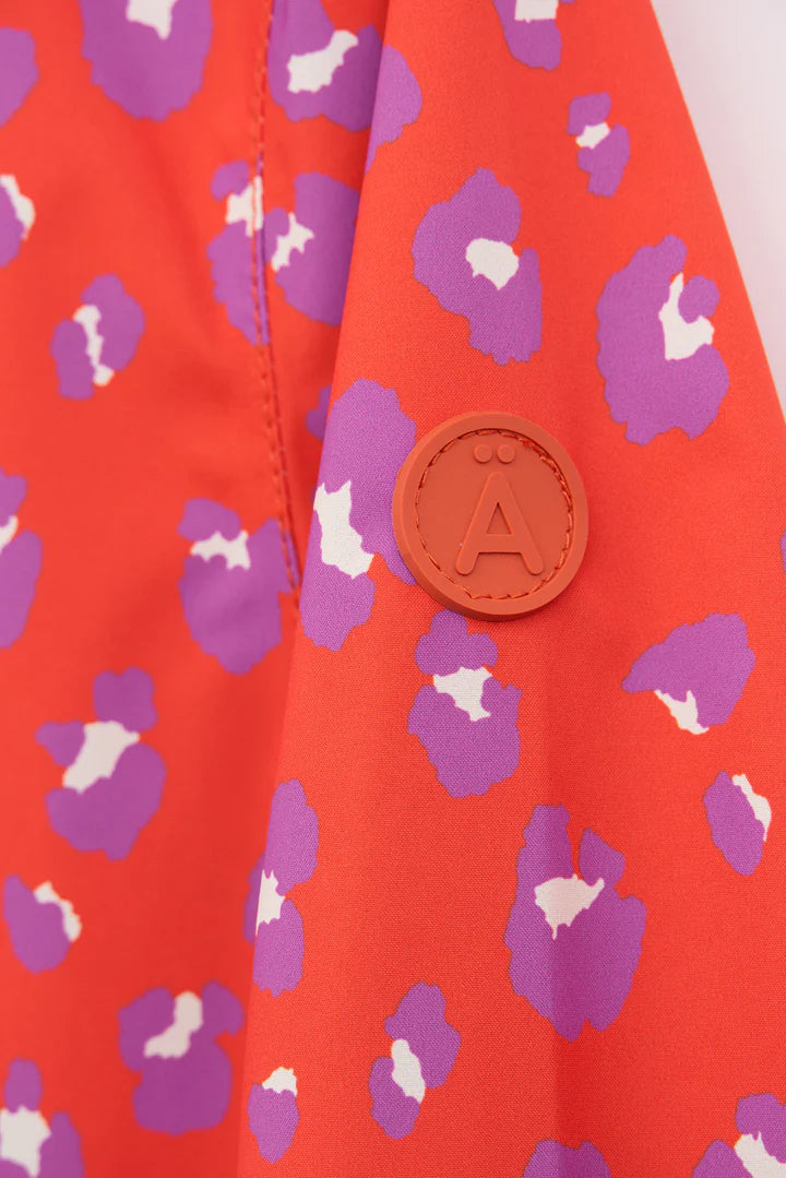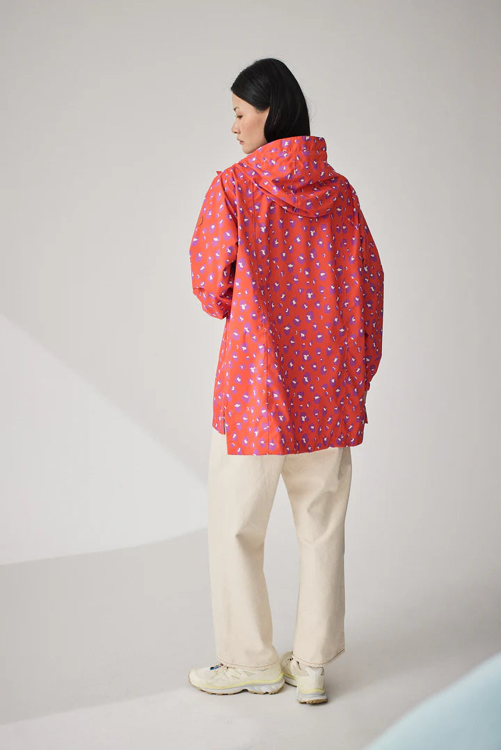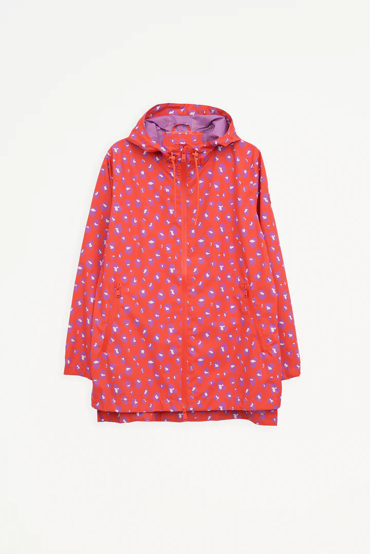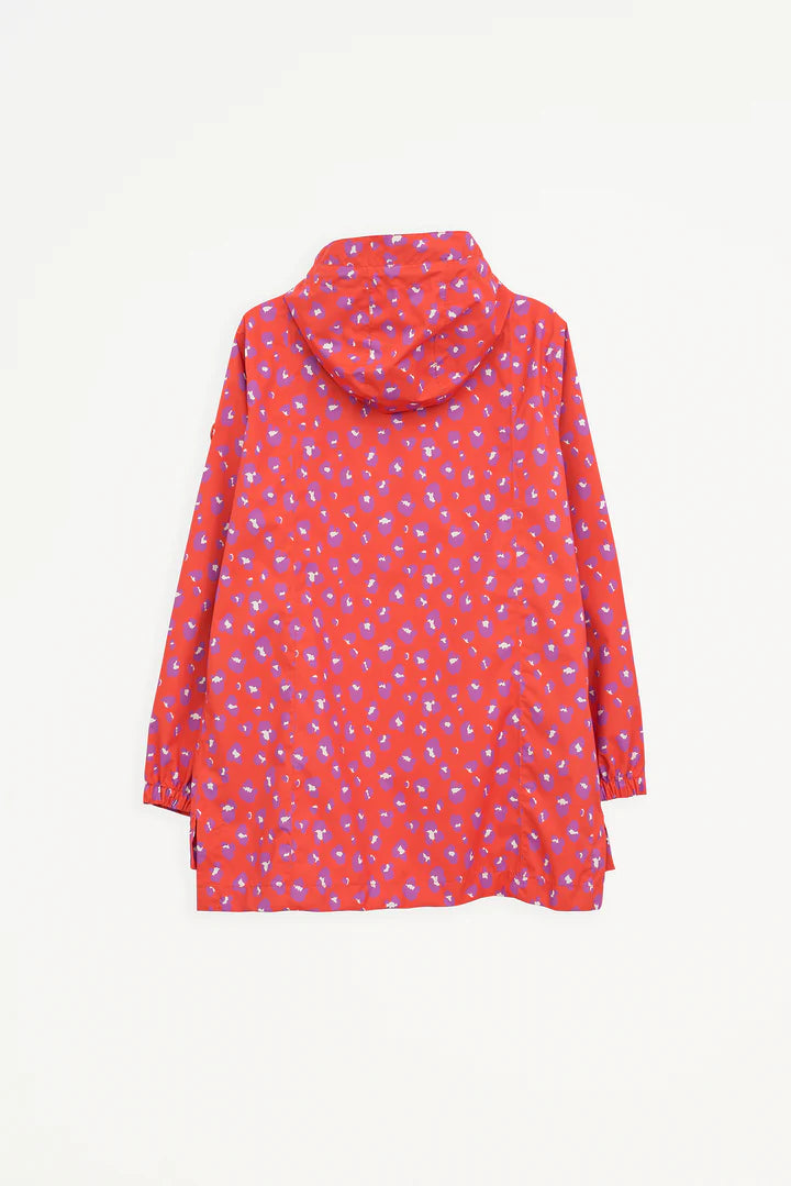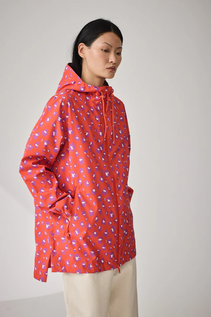 The Magla Waterproof Jacket is crafted from recycled polyester waterproof fabric, featuring a bold graphic touch with an all-over animal print. Fully seam-sealed for superior protection, it includes a dual-slider front zipper, vertical back slits, and side vents.