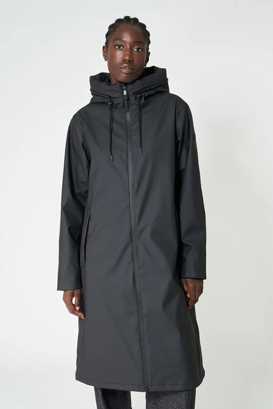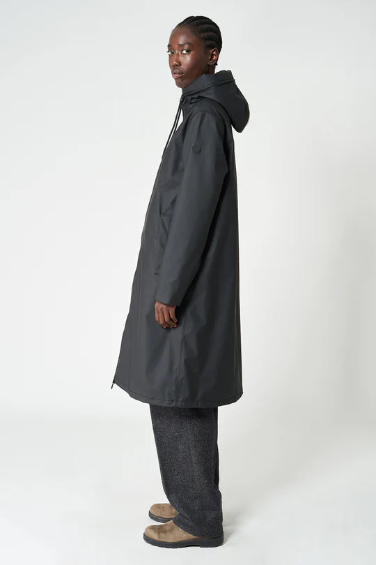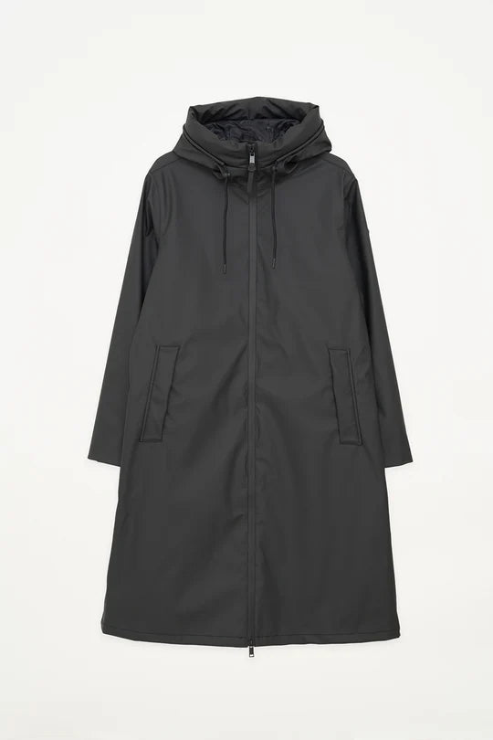 Prepare for cold rainy days with the Neige coat. Combining practicality with a clean and straightforward design, it is cut from our iconic 100% waterproof matte PU. With a slightly A-line silhouette, it features all seams taped, a double cursor waterproof zipper through front and a structured hood with extra width and high collar. With a featherless and breathable lightweight insulation, it will keep you warm and dry throughout both fall and winter.