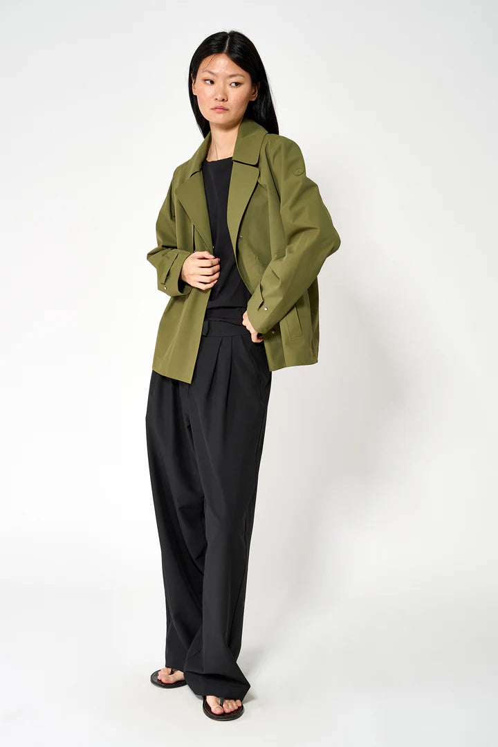 The Niwl Seamless Short Trench Coat is crafted from polyester twill fabric. Fully waterproof, it features taped seams for superior protection.