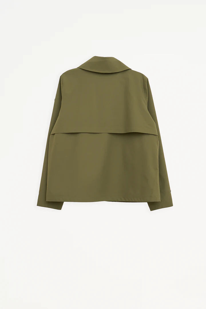 Design details include a back yoke and an additional yoke on the right front side, concealed snap buttons, and a detachable hood with an adjustable drawstring. Designed with a flawless cut, the Niwl model combines elegance with high functionality.