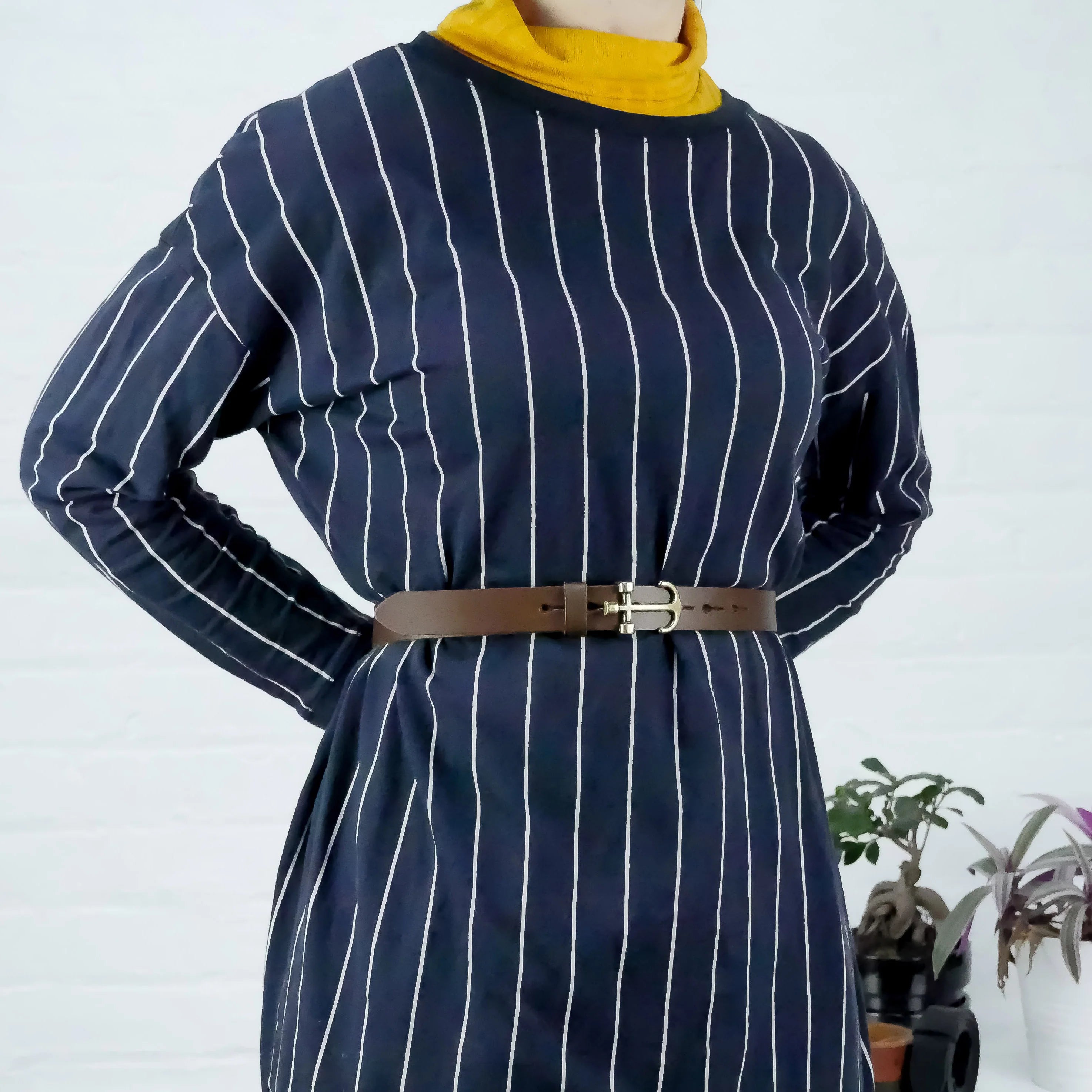 The anchor-shaped buckle sits on a slim belt made with real leather, sitting lengthways along the strap. Made by hand in our London workshop, the Italian leather belt measures just 1 inch/2.5 cm wide and comes in brown.